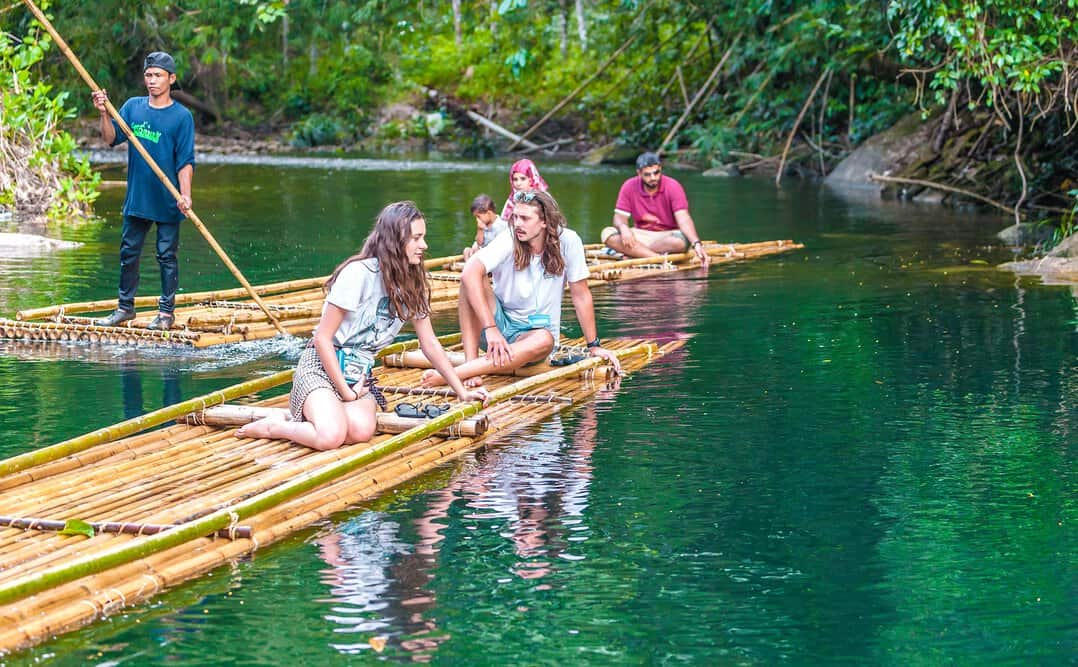 竹筏漂流:您將乘坐用竹子製成的筏子,隨著蜿蜒的河道順流而下,穿過濃密的熱帶叢林與清澈的溪流。這種傳統且自然的漂流方式,能讓人真正融入環境、感受水流、樹影、森林的靜謐。部分旅程會在 Song Praek River 等地進行。